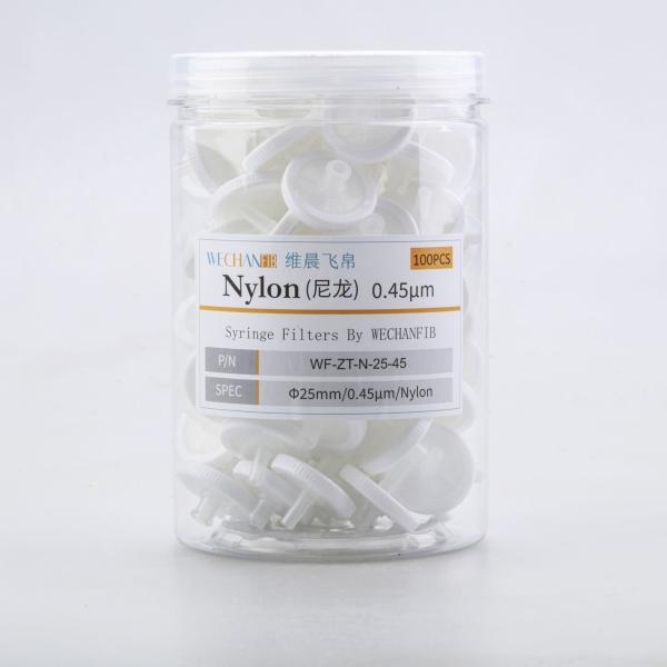 WECHENFIB PA6 Syringe Filter with good hydrophilicity are suitable for the filtration of water-based solutions (pH range 3-14), but also tolerant of some organic solvents and alkaline solutions.